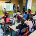 élèves de primaire ont été stupéfaits de voir arriver le pilote de chasse dans leur classe.