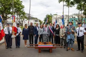 Olivier Hoarau a insisté sur la nécessité d’être soudés et solidaires : « face aux instincts de violence, d’obscurantisme, de rejet, opposons notre souhait de voir une paix universelle ». Le maire a également invité les élèves qui ont reçu le flambeau des mains des anciens combattants à être les dignes héritiers de la mémoire, de l’histoire des Anciens et de porter fièrement nos valeurs républicaines. La Réunion est le seul département d’outre-mer dans ce tour de France de la flamme du Soldat inconnu, organisé dans le cadre du centenaire de la Société des membres de la Légion d’honneur. Cette flamme représente la mémoire des 1,4 million de soldats français dont 1 500 Réunionnais qui sont morts au combat pour la France durant la Première Guerre mondiale.