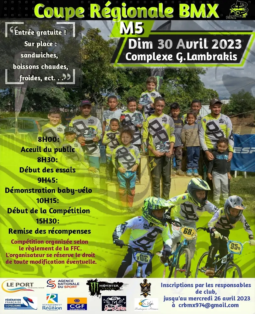 Coupe régionale de BMX : essais, démonstrations et compétition. Rejoignez-nous ce dimanche 30 avril au Complexe Sportif Municipal Georges Lambrakis à partir de 8h pour la Coupe Régionale de BMX.