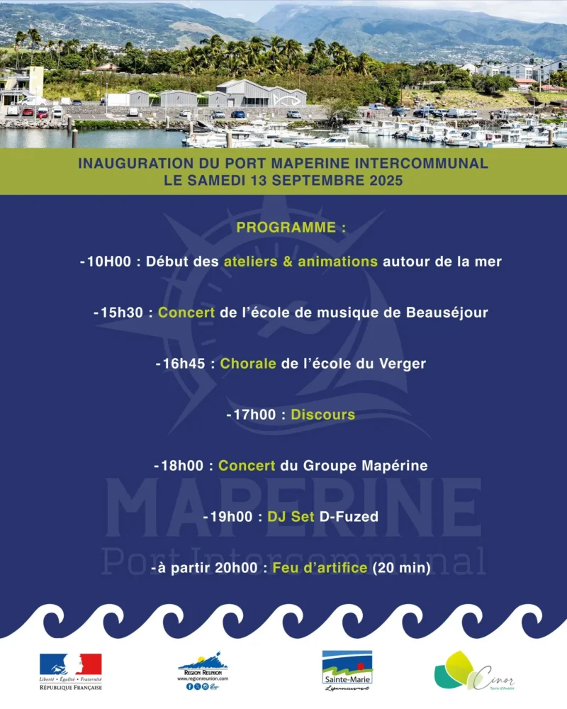 Le samedi 13 septembre 2025, la CINOR (Communauté Intercommunale du Nord de La Réunion) a inauguré le nouveau port intercommunal Mapérine, anciennement connu sous le nom de Port de Sainte-Marie. Cette transformation vise à dynamiser le littoral nord de l’île et à offrir un espace moderne aux usagers de la mer.