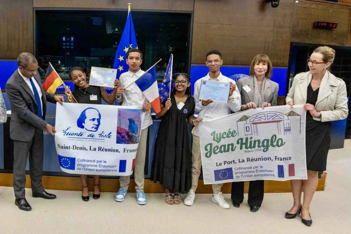 Le projet réunionnais intitulé « Une société multiculturelle comme force motrice d’une Europe communauté de valeurs, de liberté et de paix » fait suite à un échange tripartite avec le lycée Hölderlin de Heidelberg. Grâce à cette récompense, les élèves vont pouvoir poursuivre leur collaboration et s’exprimer de manière artistique sur l’idée d’une Europe multiculturelle à travers des ateliers créatifs (danse, théâtre, poetry-slam… ). Les lycéens ont pu assister à une séance plénière du Parlement européen et visiter Strasbourg et Paris.