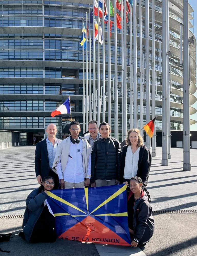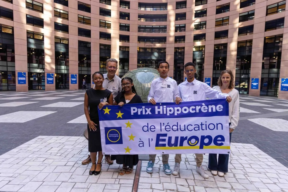 Félicitations aux élèves de la section euro-allemand des lycées Jean Hinglo et Leconte-de-Lisle qui ont remporté le Grand Prix Hippocrène de l’Éducation à l’Europe 2025. Quatre élèves de seconde -Ylina Sellaman, Damien Estève, Nolwen Thomas et Mouhammad Dargaï – accompagnés de leurs enseignants ont été reçus début avril au Parlement Européen à Strasbourg.