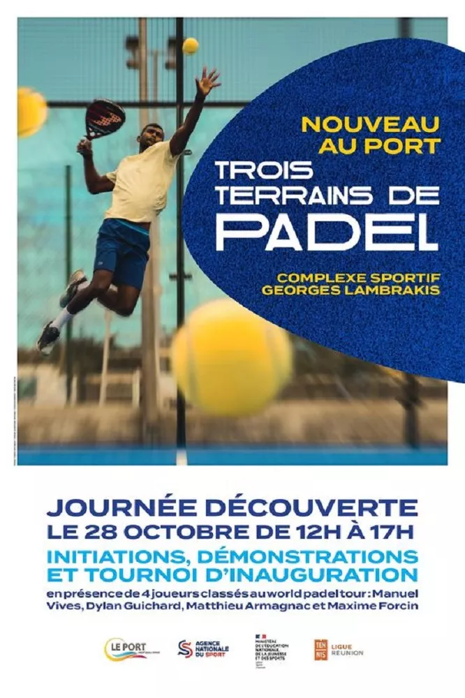 Ce vendredi 28 octobre 2022, la ville du Port vous invite à découvrir une nouvelle discipline ! En effet, dans le cadre de l’inauguration des terrains de padel, vous êtes conviez à participer à la journée découverte de ce sport de raquette de 12h à 17h au Complexe Sportif Georges Lambrakis.