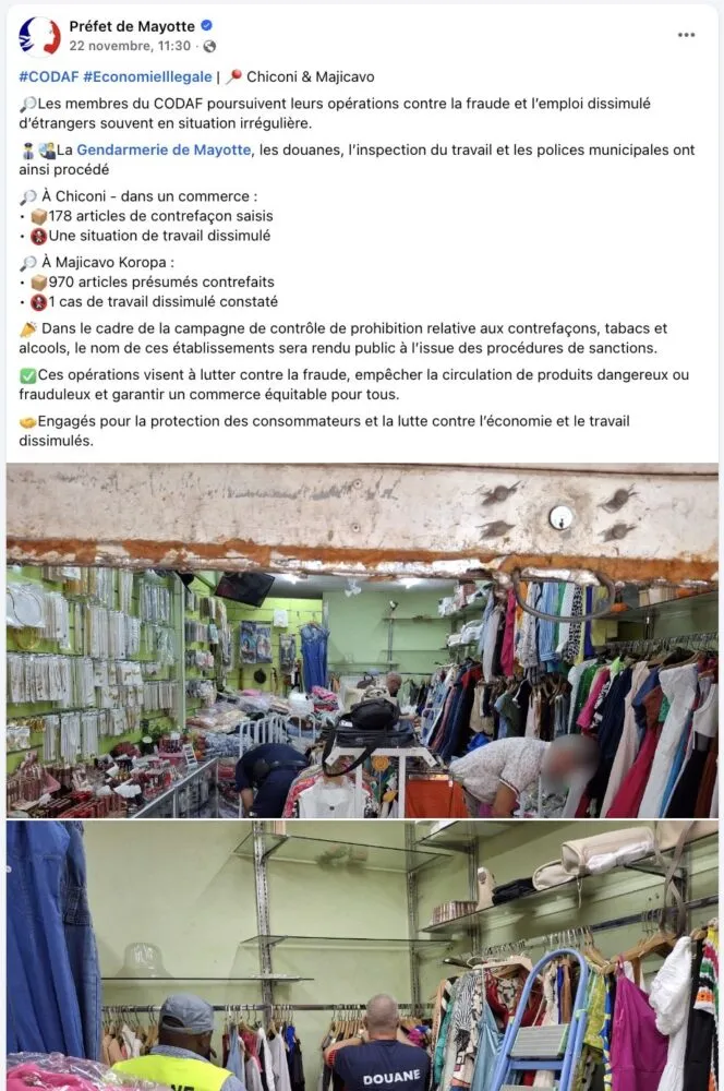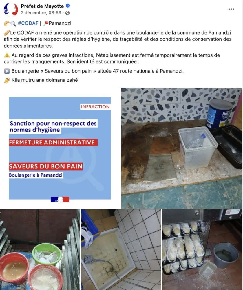 À Mayotte, même chose : chaque commerce sanctionné est clairement identifié, sans exception.