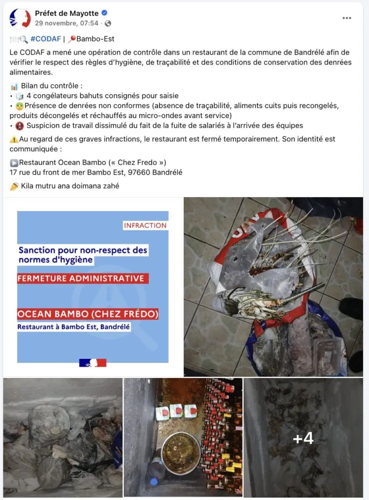Le préfet de La Réunion rappelle que la sécurité alimentaire demeure une priorité absolue. Des contrôles sanitaires sont régulièrement menés sur l’ensemble du territoire afin de garantir la protection des consommateurs et de prévenir tout risque lié à des pratiques non conformes.