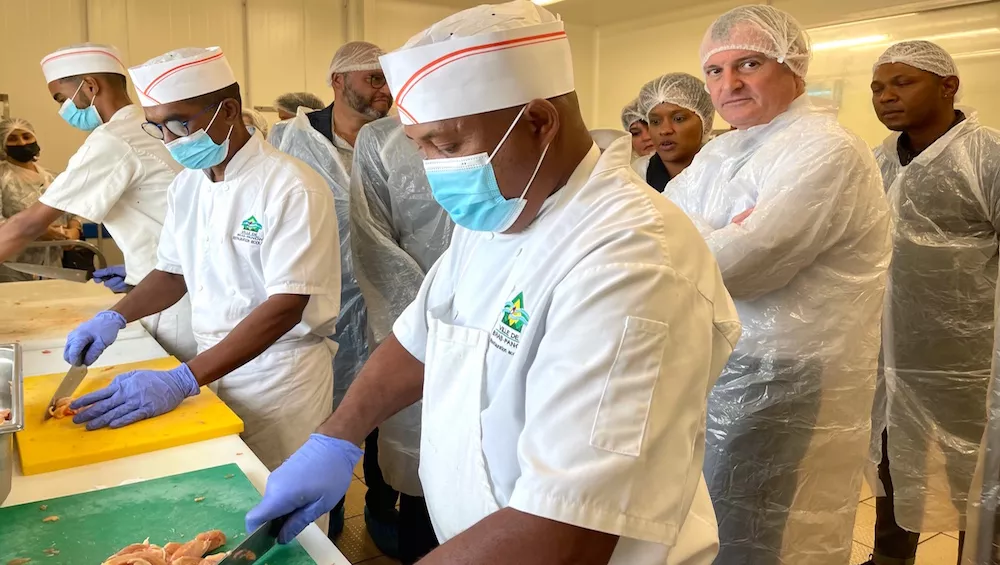 Mais revenons à la visite du préfet à Bras-Panon où il a été reçu par le maire, puis à la cuisine centrale par Arielle Rouget, la responsable de la restauration scolaire. Au programme : visite de la légumerie de la cuisine centrale (découpe et transformation des légumes); Présentation du plateau technique (formation, présentation des projets en lien avec le PAT, volet loi EGAlim) et visite à l’école « Ma pensée » (repas dans le cadre des « mercredi jeunesse »)