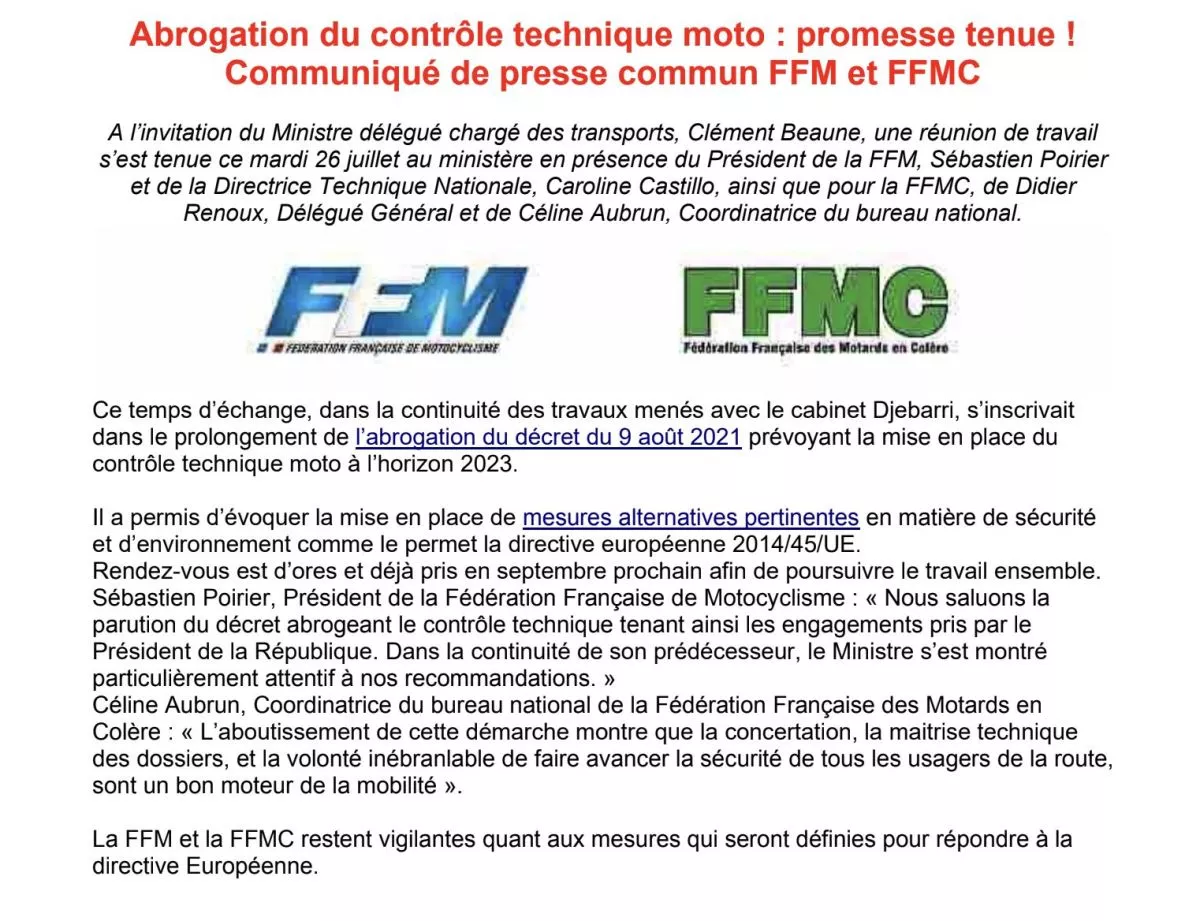 Le décret de mise en place du contrôle technique des deux-roues, qui prévoyait un début en 2023, a été tout simplement supprimé par un nouveau décret publié ce mardi au Journal officiel.