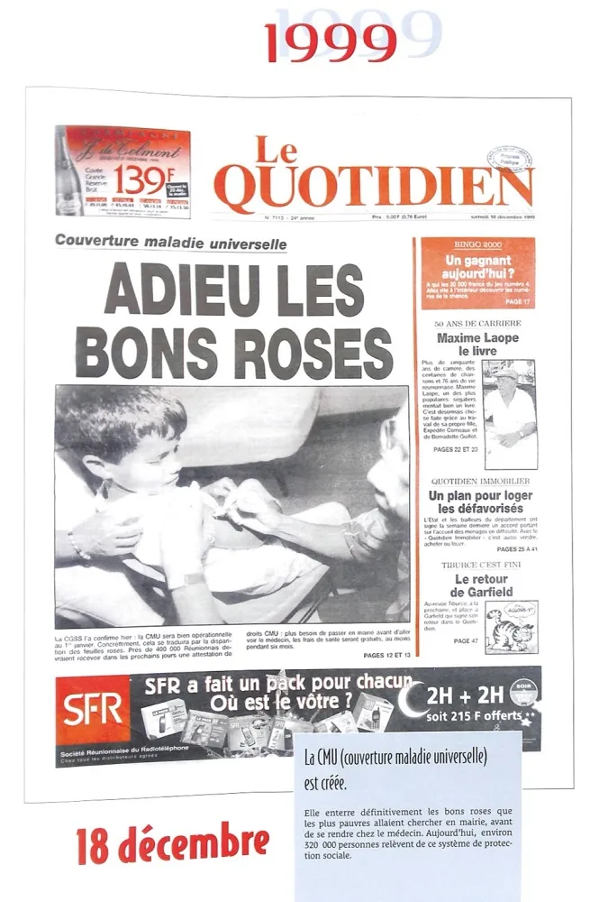 -18 décembre 1999 : en l’an 2000 fini les bons roses et les feuilles blanches… Pendant des dizaines d’années il fallait passer à la mairie annexe avant d’aller chez le médecin…