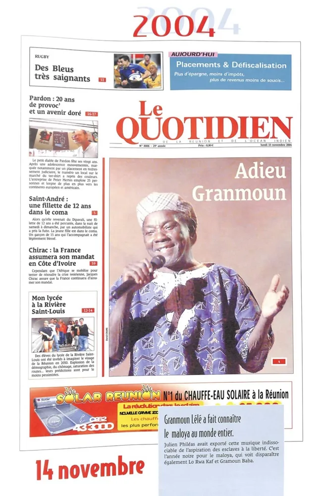 -14 novembre 2004 : Granmoun Lélé décède d’une grande d’une longue maladie rénale…Il avait 74 ans.