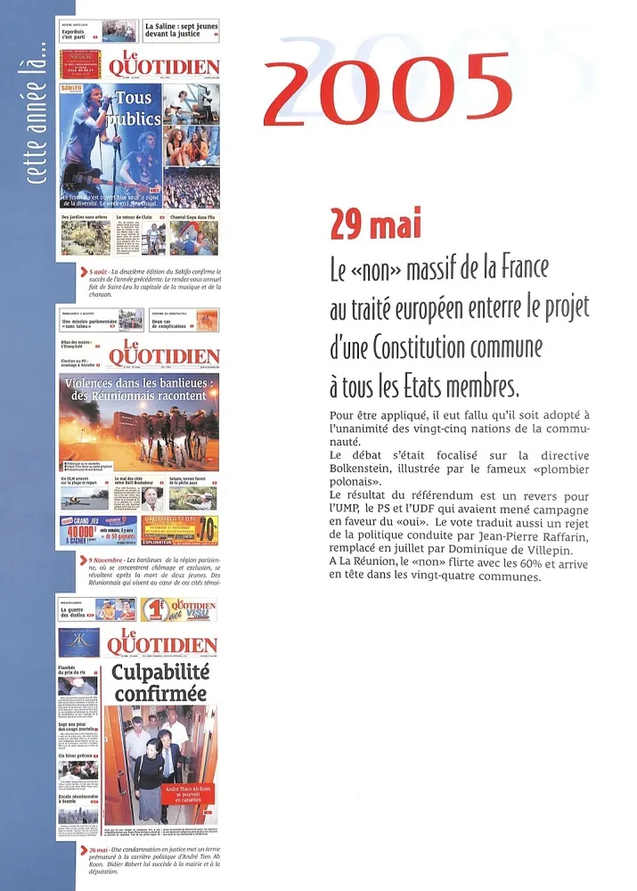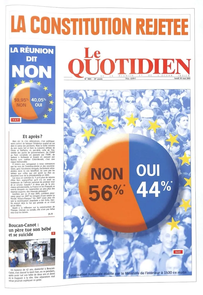 -29 Mai 2005 : référendum sur la constitution européenne : pour une fois la Reunion a voté comme la Metropole avec près de 60 % de Non…