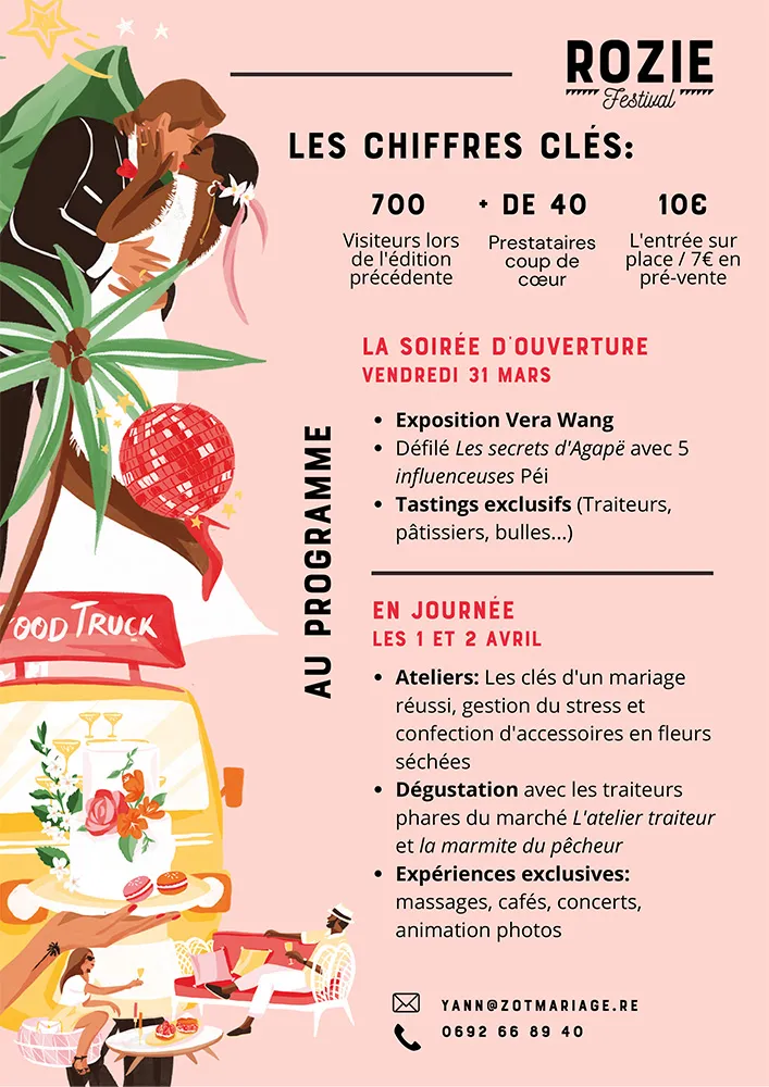 Exposition Vera Wang, la célèbre marque de robe de mariées américaine, défilé Les secrets d’Agapë avec la participation de 5 femmes inspirantes et créatrice de contenu péi, différents ateliers pour pousser l’expérience encore plus loin et de nouvelles pépites pour les évènements à la Réunion.