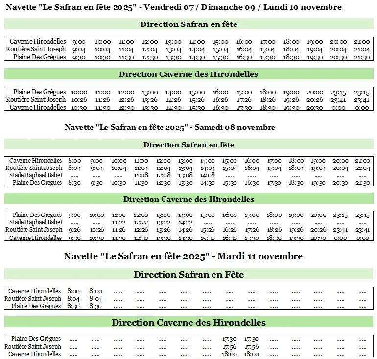Téléchargez les horaires des navettes dans la rubrique « Actualités » sur carsud.re.