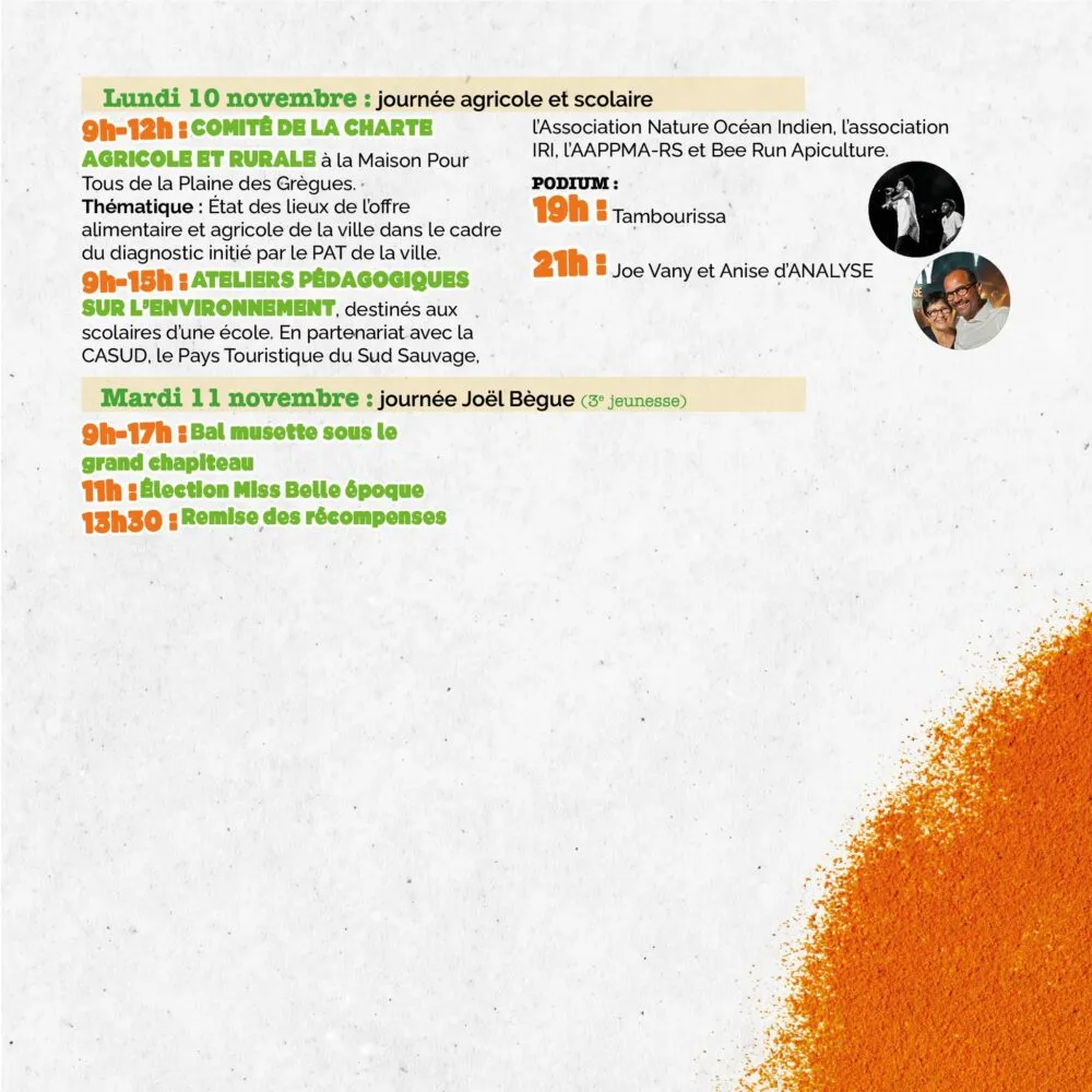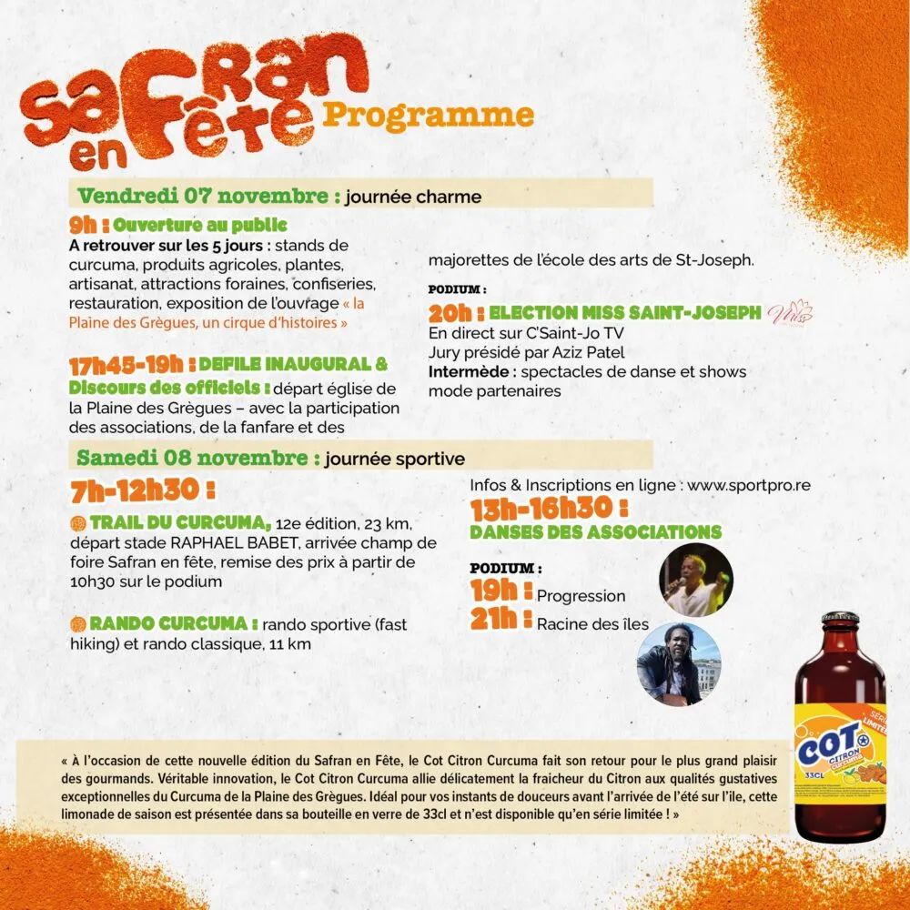C’est une tradition à laquelle les Saint-Joséphois tiennent comme à un trésor : le Safran en Fête revient du 7 au 11 novembre à la Plaine des Grègues, pour une 22ᵉ édition placée sous le signe du partage, de la solidarité et de la fierté locale.