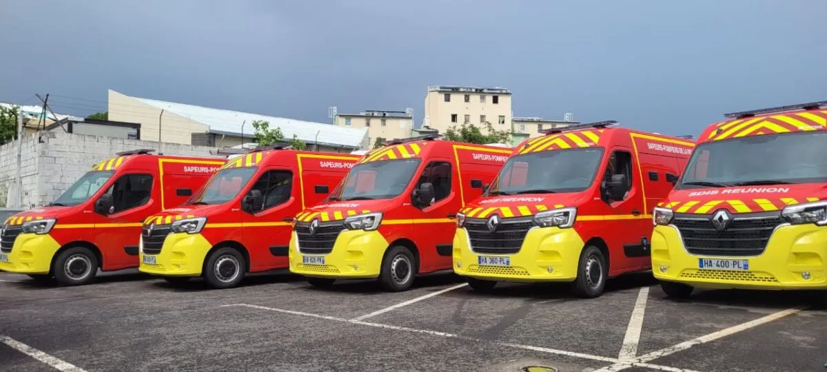 « Dans le cadre de sa politique de modernisation et d’amélioration continue de la qualité des interventions, le Service Départemental d’Incendie et de Secours de La Réunion (SDIS 974) annonce l’arrivée de neuf nouveaux Véhicules de Secours et d’Assistance aux Victimes (VSAV).