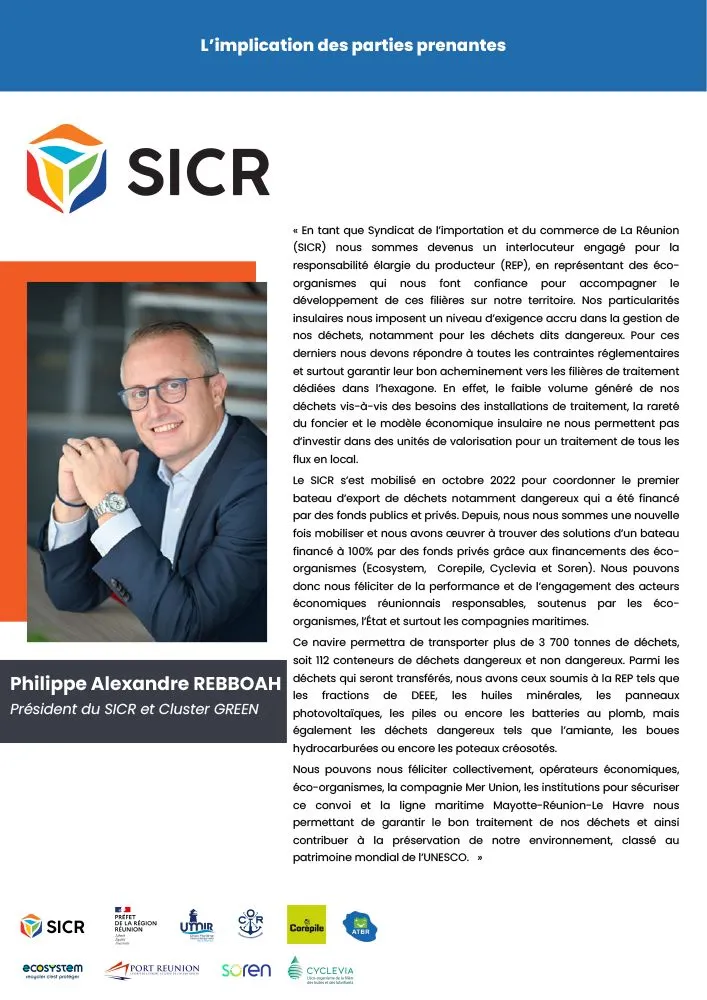 Dossier de presse Le SICR pilote l’affrètement de déchets dangereux et non dangereux vers Le Havre grâce à un bateau financé à 100% sur fonds privés 22.11.2023-6 par Céline Hardelain 23 novembre 2023 1 min de lecture Ne manquez pas toute l’actualité de La Réunion ! Abonnez-vous à la newsletter de Free Dom ! Valider Partager Facebook Twitter Pinterest Linkedin Whatsapp Reddit Email Céline Hardelain Laisser un commentaire Annuler la réponseYour email address will not be published. Enregistrer mon nom, mon e-mail et mon site dans le navigateur pour mon prochain commentaire. Current ye@r * Leave this field empty Articles récents... Jeudi 1ᵉʳ janvier 2026 – Météo, éphéméride et horoscope du jour Mercredi 31 décembre 2025 – Météo, éphéméride et horoscope du jour Hommage à Johnny Hallyday sur Free Dom 2 ce 5 décembre Mardi 30 décembre 2025 – Météo, éphéméride et horoscope du jour Saint-Joseph : découverte de 2337 plants de cannabis, arrestation de 2 individus Point sur le réseau routier départemental, 29 décembre à 16H30 Suicide sur le pont de la Rivière d’Abord : importante mobilisation des secours et des forces de l’ordre Radier submergé à Ilet Furcy : la route de Cilaos fermée à la circulation cette nuit Fortes pluies : appel à la plus grande prudence à Saint-Paul