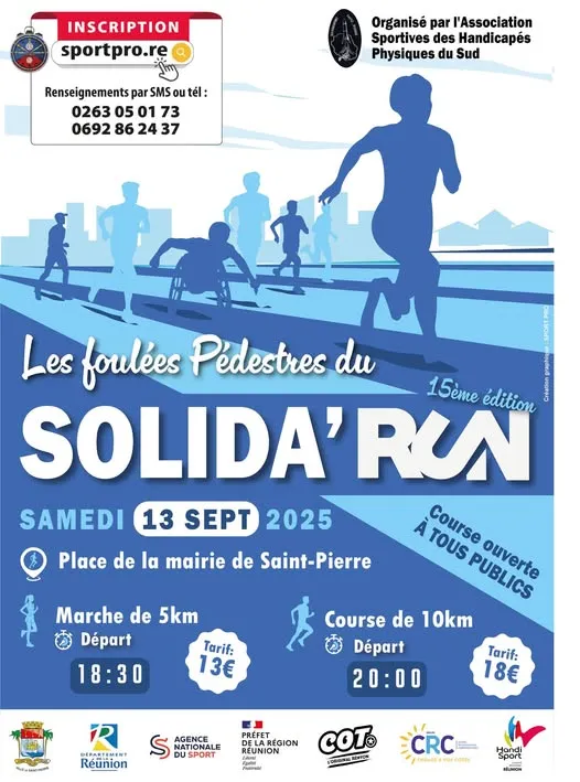 La solidarité sera une nouvelle fois au cœur de la capitale du Sud avec le grand retour du Solida’Run, ce samedi 13 septembre 2025. Organisée par l’Association Sportive des Handicapés Physiques du Sud, cette course emblématique fêtera sa 15ᵉ édition sur la place de la mairie de Saint-Pierre.