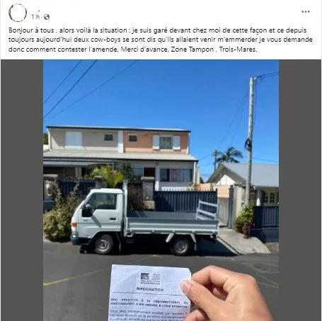 Un habitant de Trois Mares au Tampon, pousse un gros coup de gueule.  Comme à l’accoutumée, il gare son véhicule devant son domicile. Mais aujourd’hui, il s’est fait verbaliser.