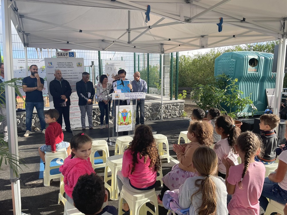 Vendredi 3 mai 2024, la Commune du Tampon a inauguré après 3 mois de travaux, la 24ème aire de jeux de la ville à Notre Dame de la Paix, en face de l’école primaire.