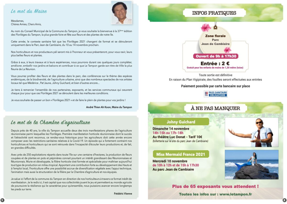1. Mr le préfet i faut interdire le florilège au tampon , Zot i voi pa le konavirus augmentent de jour en jour , la réunion lé en danger domoune i mète pa vaccin , reporte les florilèges , si non zot i fé pa la fête de fin d’année en famille si i continue.