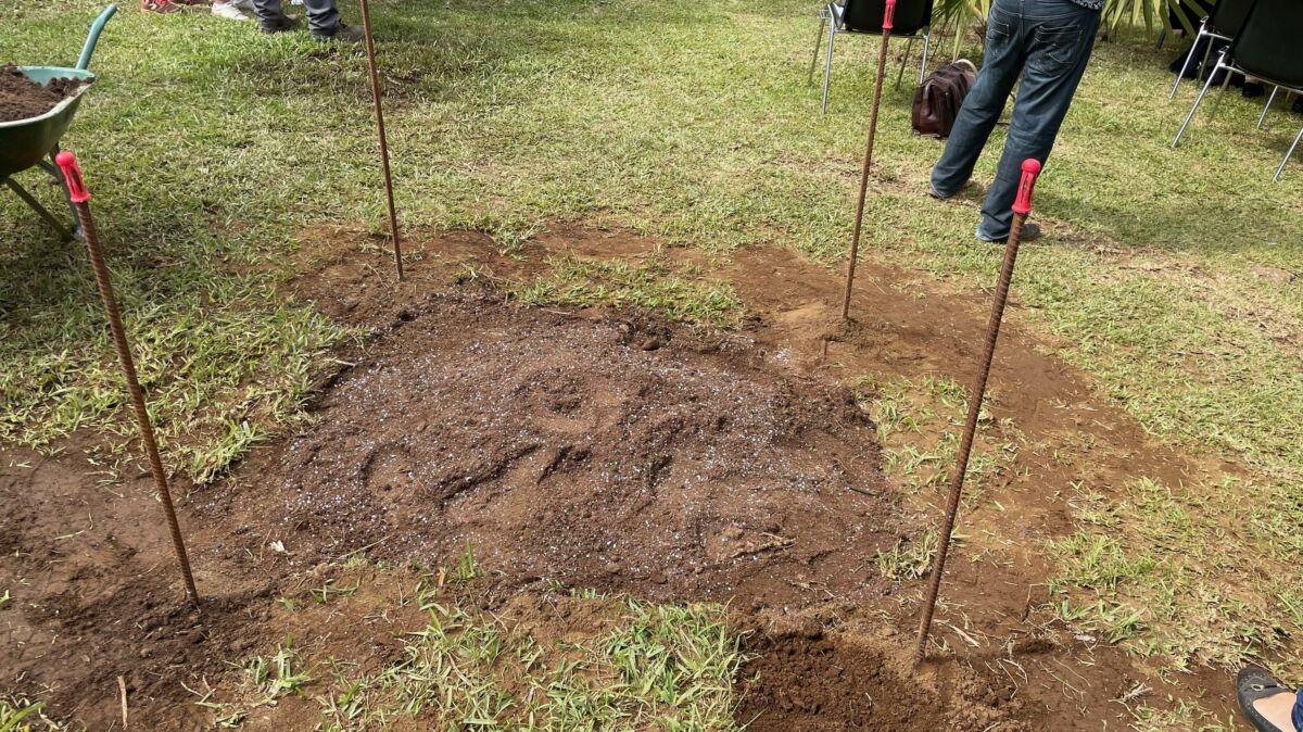 Cette magnifique graine sera la 4ème plantée sur notre île. Elle vient de Thaïlande, elle est arrivée sur l’île le 2 avril, et a germé au bout de 1 mois. Elle n’est pas enterrée, mais posée au sol et protégée par une cage.