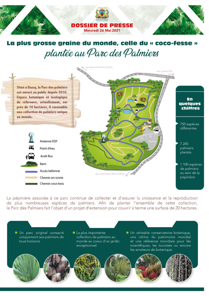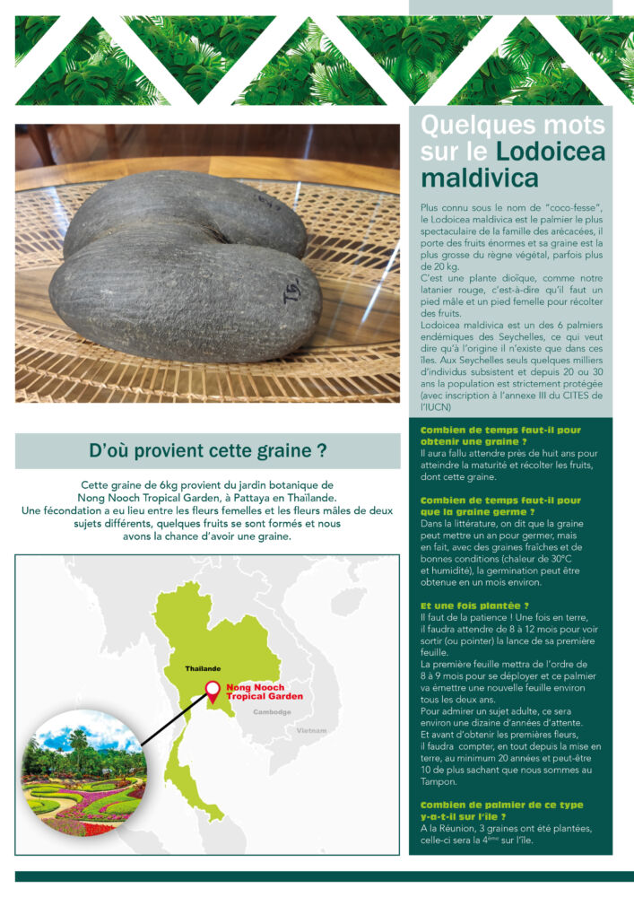 Ce mercredi 26 mai au Parc des Palmiers au Tampon aura lieu la présentation suivie de la plantation de la plus grosse graine du monde : un Lodoicea maldivica de 6 kilos !