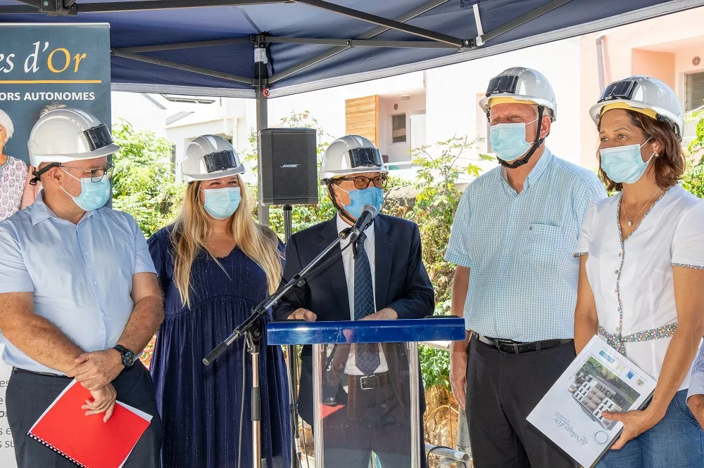 Hier, mercredi 1er décembre, a eu lieu la pose de la première pierre de la résidence séniors Les Villages d’Or en présence de Monsieur le Maire, André THIEN AH KOON, de Madame Marie ESTOURNET, Présidente Directrice Générale Les Villages d’Or, de Monsieur Thierry OUILLON, Directeur Général SIDR et des élus du Conseil Municipal du Tampon.