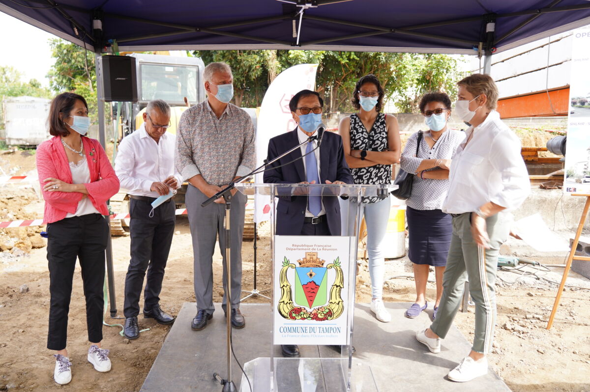 Ce mercredi 3 novembre, a eu lieu les poses de premières pierres des groupes d’habitations « SAUTRON » et « BARET » au Tampon en présence du maire André THIEN AH KOON, de Valérie LENORMAND, Directrice générale adjointe de la SHLMR et des élus du Conseil Municipal du Tampon.