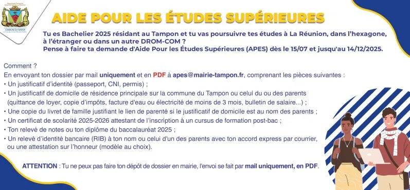 J’adresse mes sincères félicitations à la jeunesse Tamponnaise et je les invite à constituer leur dossier, dès maintenant et jusqu’au 14 décembre 2025.