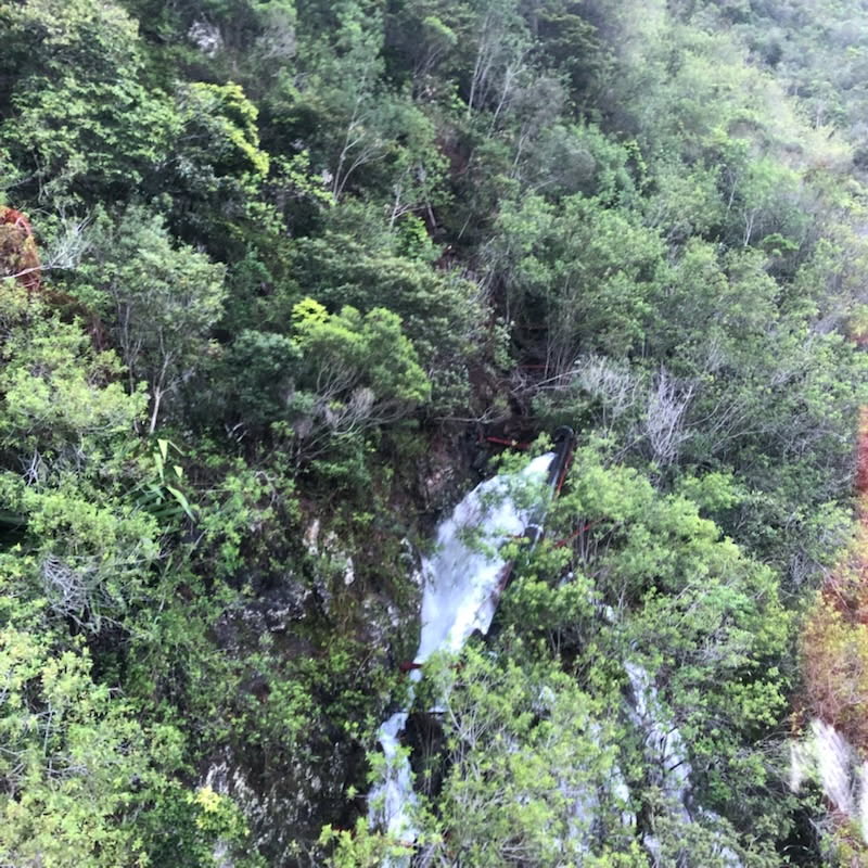 Des purges indispensable de la falaises sont en cours pour que les techniciens de la SUDEAU puissent travailler en toute sécurité pour ensuite