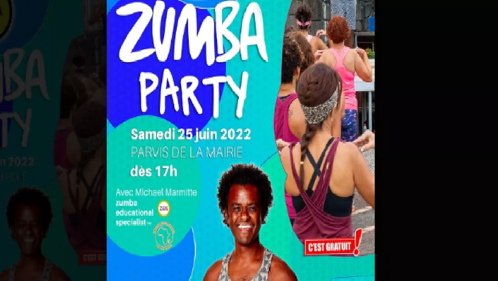 Ce samedi 25 juin, soyez nombreux à venir participer à la Zumba party. Cet événement, organisé par la commune du Tampon, aura lieu dès 17 h sur le parvis de la Mairie. Et surtout, n’oubliez pas, pour l’occasion, le dress code sera le Bleu.