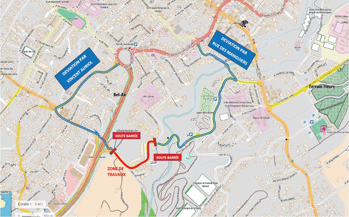 La ville du Tampon informe les usagers que des travaux d’enrobés seront effectués sur la rue Kerveguen les 26 et 27 septembre 2024, de 7h30 à 16h30. Pendant cette période, la rue Kerveguen sera barrée, à l’exception des riverains (voir plan de déviation). Les déviations prévues passeront par :