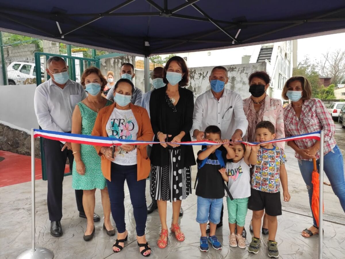 Madame Laurence MONDON, 2e adjointe à la Mairie du Tampon, accompagnée des élus, ont inauguré ce lieu récréatif tant attendu par les habitants du quartier.
