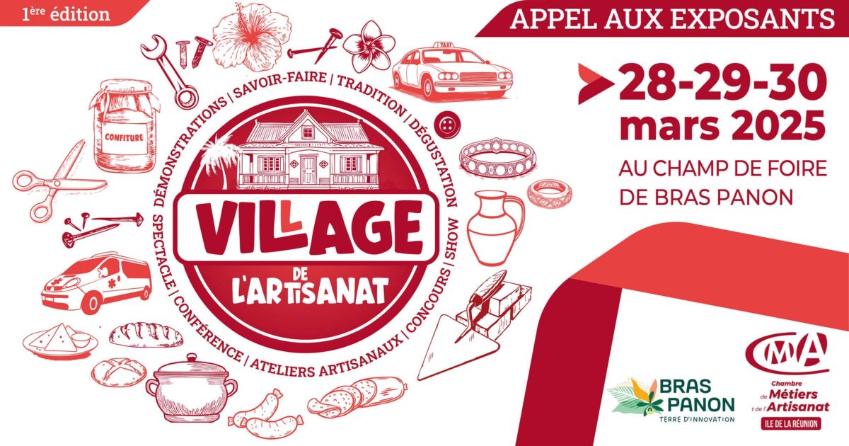 Avis à tous les artisans de La Réunion ! La Chambre des Métiers et de l’Artisanat annonce l’arrivée du Village de l’Artisanat, un événement incontournable prévu les 28, 29 et 30 mars 2025 au Champ de Foire de Bras-Panon.
