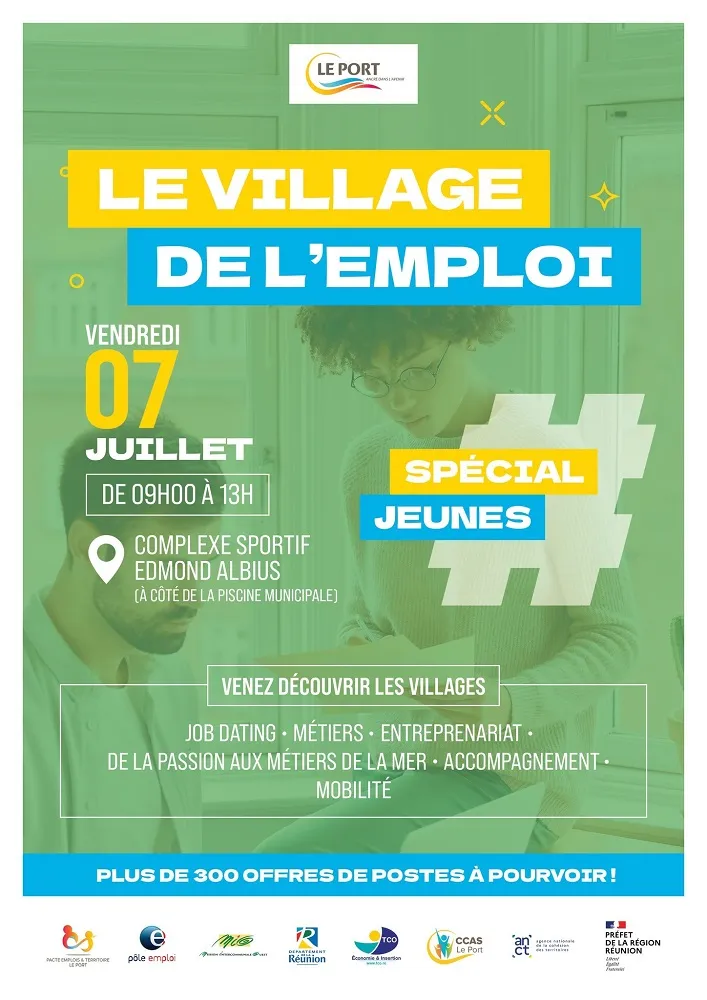 Ne manquez pas cette opportunité de vous rapprocher de votre objectif professionnel. Rendez-vous le 7 juillet au Complexe sportif Edmond Albuis, au Port, pour le Village de l’Emploi, où l’emploi et la mobilité sont mis à l’honneur !