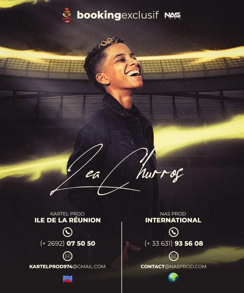L’artiste Léa Churros signe en booking exclusif chez Kartel Prod pour la Reunion et Chez Nas Prod (Maitre Gims, Soprano etc) pour l’international.