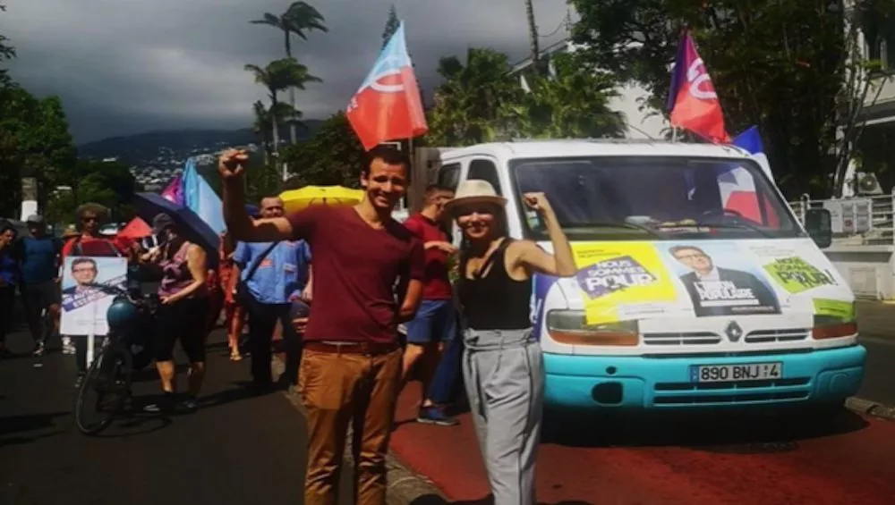 Alexis Chaussalet et la députée Karine Lebon lors du défilé du 1er mai ce dimanche à Saint-Denis