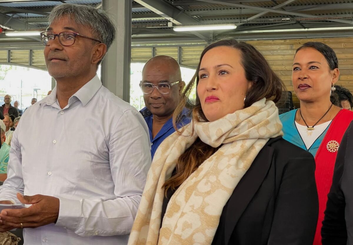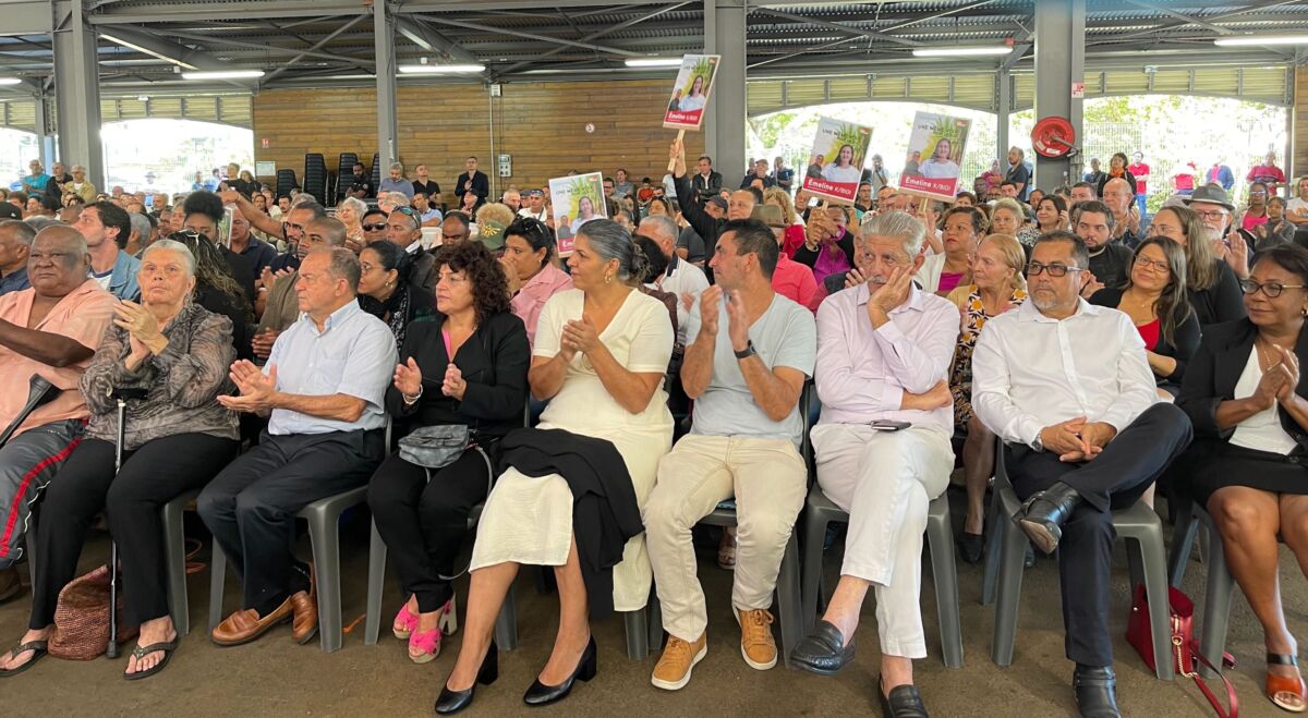 Plusieurs personnalités politiques étaient également présentes ce dimanche matin 23 juin à la Halle François Mitterand pour ce meeting en faveur de la députée sortante Emeline K’Bidi soutenue par le Front populaire réunionnais. Patrick Lebreton, Huguette Bello, la sénatrice Evelyne Corbière, le suppléant Jean-Bernard Maratchia ont pris la parole pour appeler à voter en faveur d’Emeline K’Bidy.