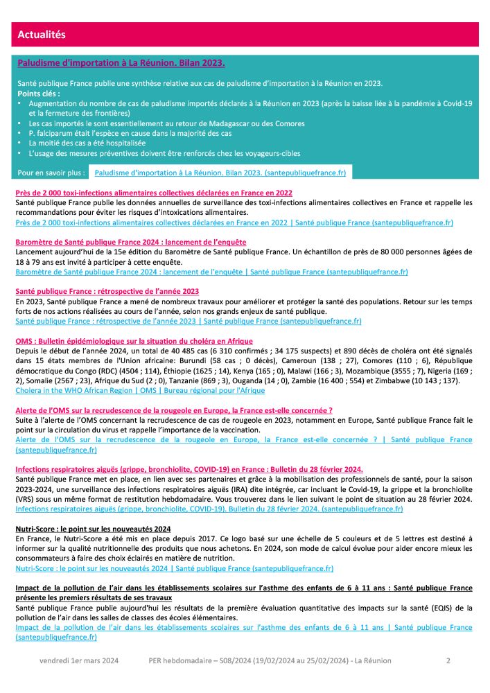 Voici le point épidémiologique régional de la semaine 08 (19 au 25 février 2024).