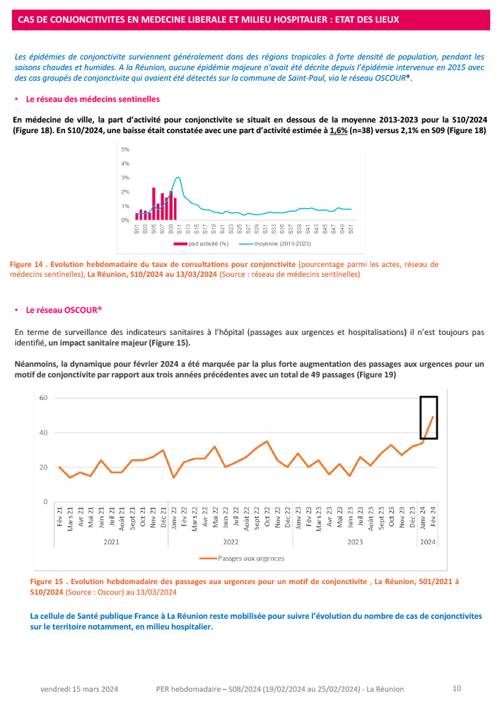 ·         Conjonctivite : Baisse des cas de conjonctivite en médecine de ville en semaine 10.