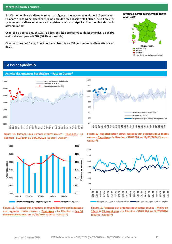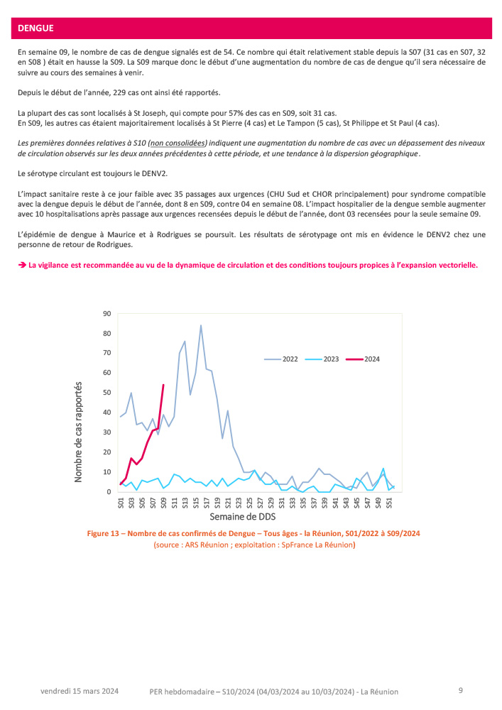·         Dengue : Hausse du nombre de cas de dengue en semaine 09. Des cas majoritairement localisés au sud.