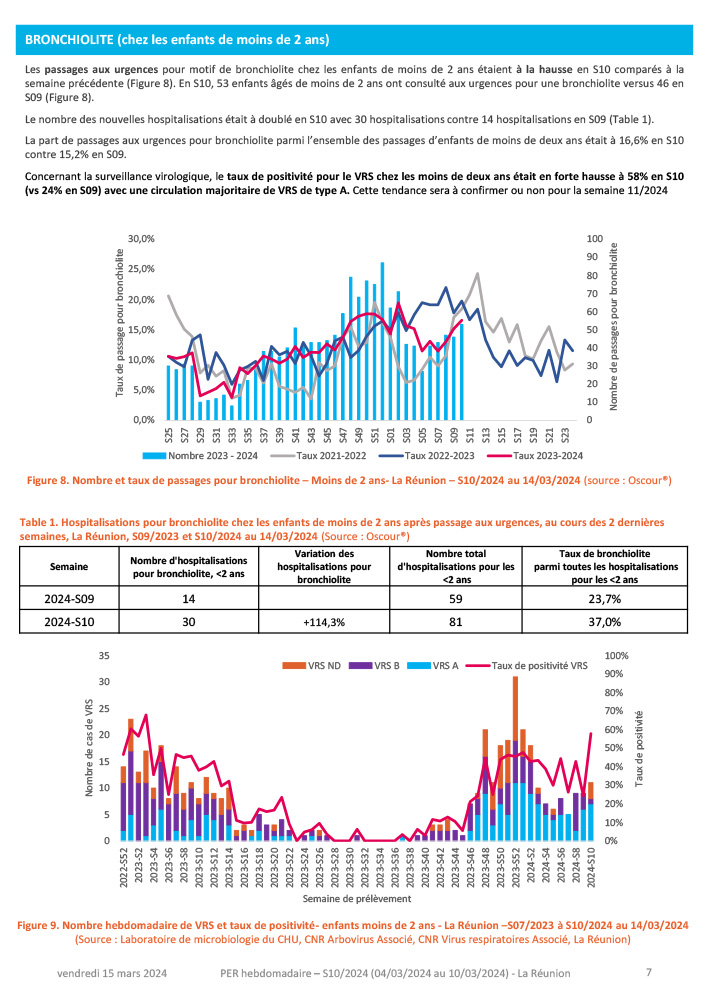 ·         Bronchiolite chez les enfants de moins de 2 ans : Hausse des indicateurs de surveillance pour la semaine 10.