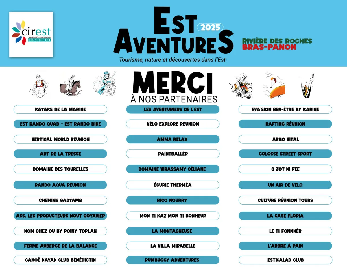 Avec le soutien de la CIREST et de ses nombreux partenaires, Est Aventures met une nouvelle fois en lumière les richesses naturelles et humaines de la région Est, tout en valorisant un tourisme durable, de proximité et ouvert à tous.