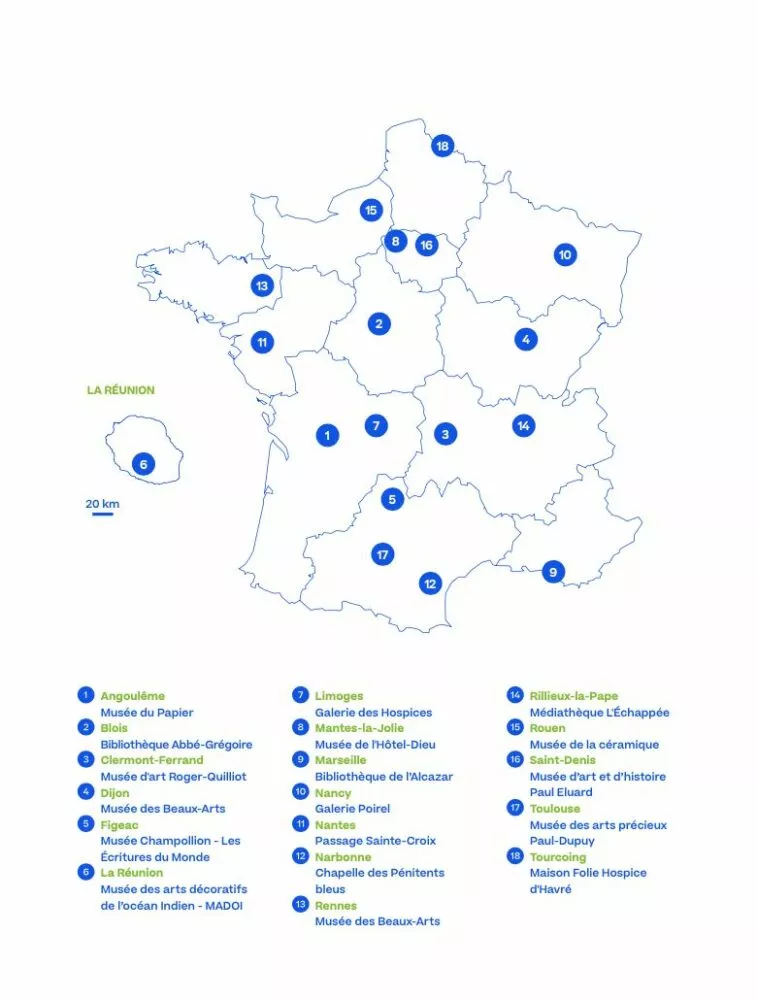 Du 20 novembre 2021 au 27 mars 2022, 18 expositions dans autant de villes de France seront ainsi présentées au public, dans un musée, une médiathèque, une bibliothèque, un espace culturel.