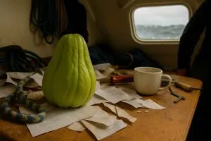 Pendant que l’équipage range le bateau au cordeau pour affronter les éléments, Free Chou reste fidèle à lui-même : posé, immobile… inutile ?