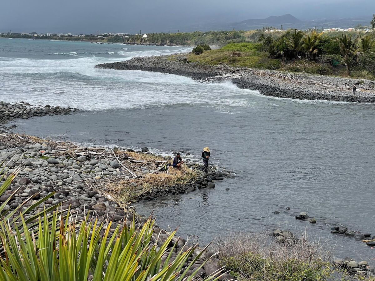En ce lundi matin 2 septembre, avec trois de ses dalons, Monsieur Antoine est venu en 4×4 jeter un œil sur son canal, situé à l’embouchure de la Rivière-du-Mât, côté Bras-Panon.