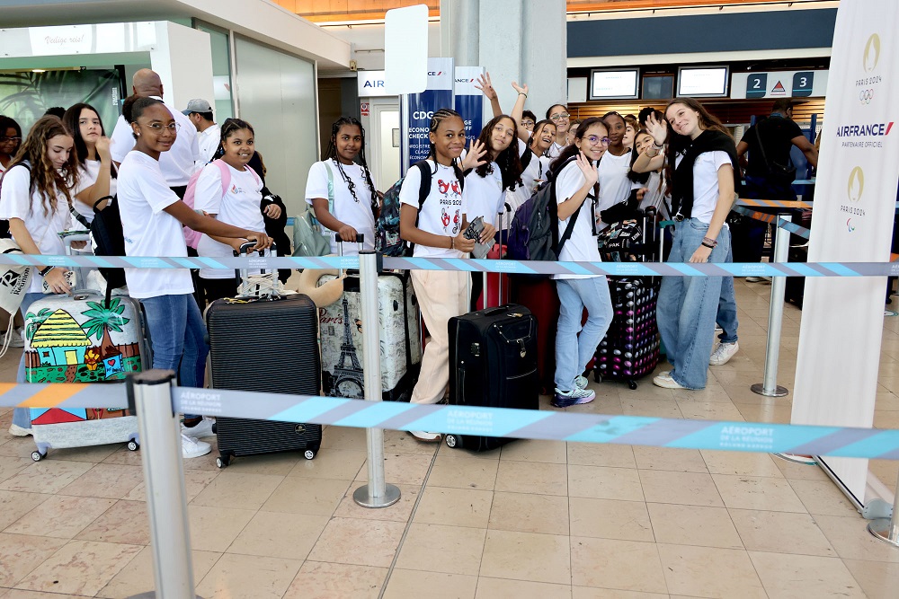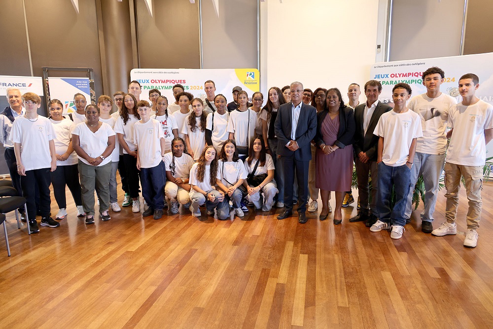 Le Président Cyrille Melchior les appelle « les médaillés d’or », car ils ont remporté haut la main le concours intitulé « JOP 2024, les collégiens réunionnais à Paris » organisé par le Département. Ils, ce sont les 24 élèves de 5e du collège de l’Etang à Saint-Paul, qui ont pris le vol Air France du 31 juillet à destination de la Capitale où ils assisteront à des compétitions de football, d’athlétisme, de volley de plage et de skateboard aux Jeux olympiques. En présence des parents, des accompagnateurs et des Conseillers départementaux Sabrina Tionohoué et Jean-François Nativel, Cyrille Melchior a félicité les collégiens pour leur performance lors du concours (épreuves sportives, d’éloquence, d’arts plastiques, de quizz…). : « Un jury indépendant vous a attribué la première place parmi les 23 collèges participants. Profitez pleinement de chaque instant que vous allez vivre à Paris parce que vous le méritez. Soyez enrichis des belles expériences que vous aurez à partager lors de ces JO et revenez à La Réunion avec pleins de souvenirs de cet événement exceptionnel. Bon voyage et bon séjour à tous« .