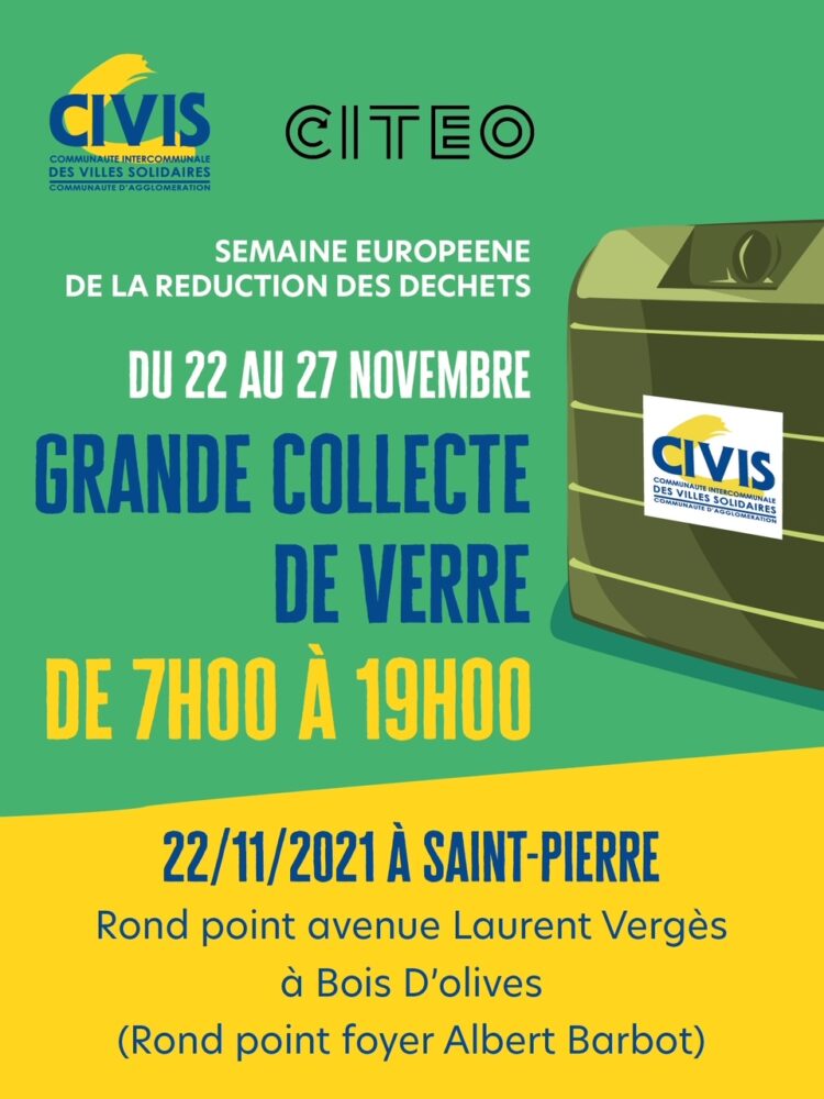Ce concours se déroule du 22 au 27 novembre 2021 à l’attention des habitants du territoire de la CIVIS : Saint-Pierre, Saint-Louis, L’Etang-Salé, Petite-Île, Cilaos, Les Avirons, sur des bornes à verre identifiées.