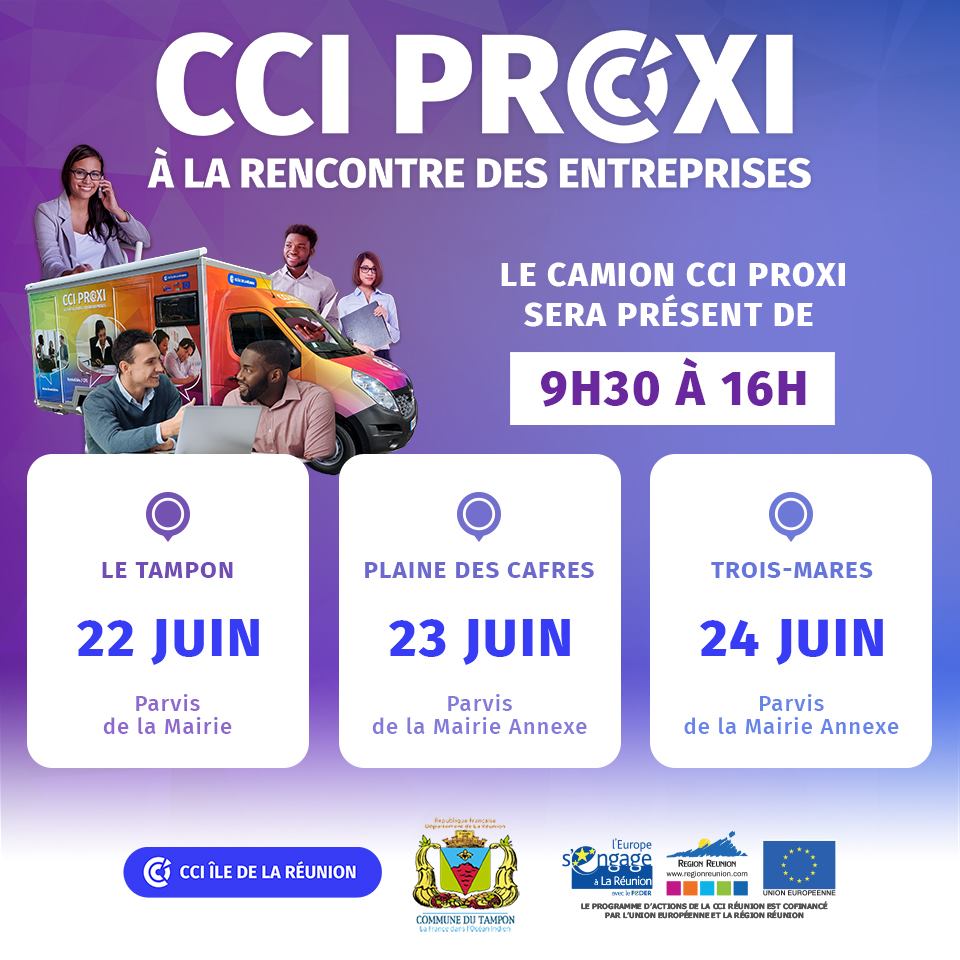 Les conseillers d’entreprises de la CCI Réunion viennent à vous ! Ils vous accueillent pour un entretien individuel dans le camion « CCI Proxi ».