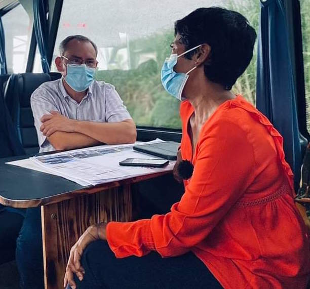 Serge Hoareau et Ericka Bareigts, les yeux dans les yeux… dans le bus de campagne. Deux futurs présidents ?