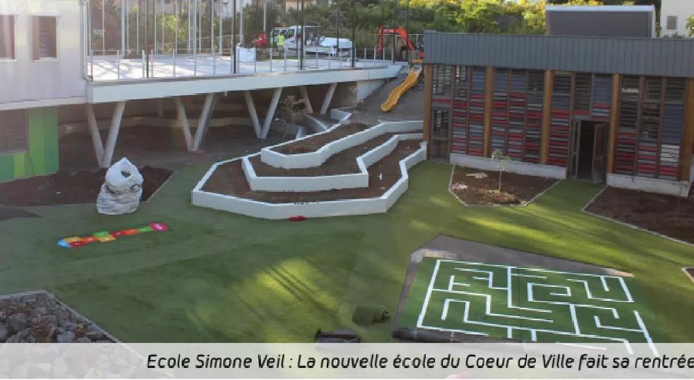 Au cœur de l’écoquartier de La Possession, l’école Simone Veil fait sa première rentrée. Sur une surface de 1600 m2, l’école regroupe 8 salles de classe, une salle polyvalente, une salle informatique, un espace restauration ainsi qu’un plateau sportif de 300 m2.
